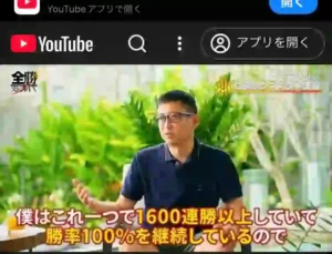 動画の中で、山口孝志は連勝スキル FXを使い1600全勝と豪語していました。