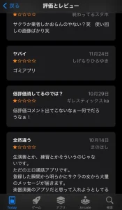 よくわからないアプリの場合、低評価レビューを確認すると、アプリの実態がわかりやすいので、登録する前に確認する癖をつけると、騙されにくくなるかもしれません。