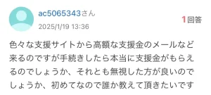 この手の支援金詐欺にだまされた方が大勢いるので、同じ目にあわないようにご注意を。