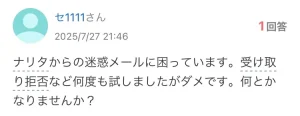 ナリタはしつこくメールしてくるので、メールは開かずに無視を決め込んでください。