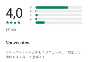 5の評価が大半ですが、サクラの可能性がありますし、1の評価もそこそこあるので、出会えない系のマッチングのレビューの特徴と一致します。