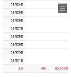 サイト内の取り引き履歴の入金額の項目に5万円と記載されていました。