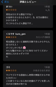 このような、アプリ利用者の低評価レビューがごろごろとあります。