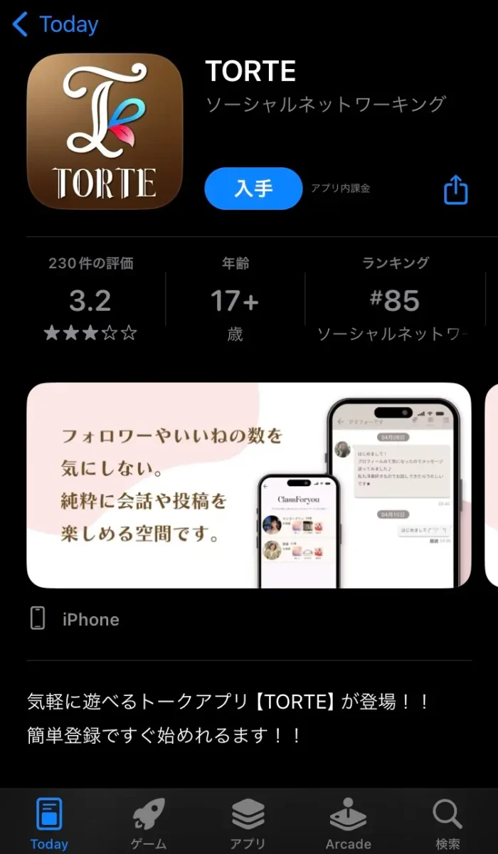 TORTEはアプリインストールすると、すぐにメッセージがきますが、これはアプリ利用者ではなく、運営側のサクラによるメッセージです。