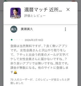 還暦マッチ/還暦マッチ運営局/のマッチングアプリを取り上げます。