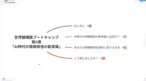 動画では、和差大輔がブートキャンプの概要をマインドマップ形式の資料を使い説明していました。