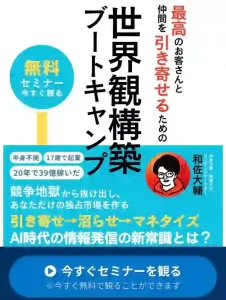 和佐大輔/株式会社SPINS/和佐とものり/世界観構築ブートキャンプを取り上げます。